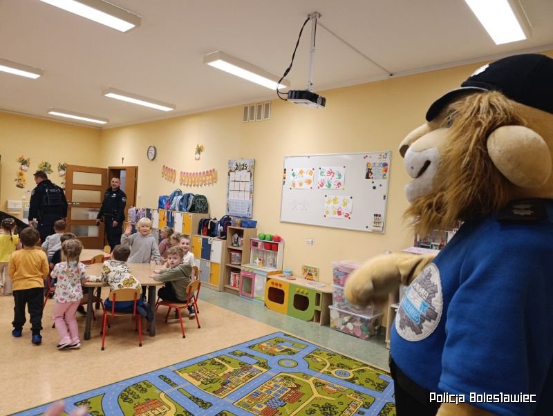 Wspólna zabawa i nauka z Komisarzem Lwem oraz czworonożnym przedstawicielem bolesławieckiej jednostki Policji sprawia, że przekazywane treści są łatwiejsze do zapamiętania, a dzieci z dużym zainteresowaniem uczestniczą w spotkaniach.