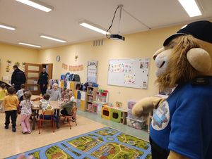W zajęciach uczestniczył policyjny pies służbowy z przewodnikiem oraz pojawił się Komisarz Lew – policyjna maskotka, który od lat towarzyszy najmłodszym w trakcie działań profilaktycznych.