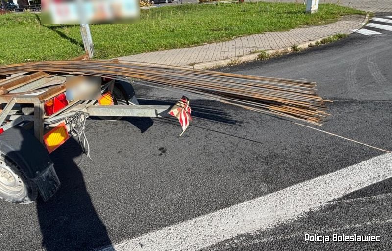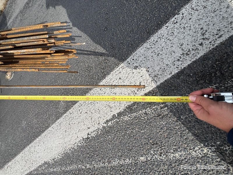 Funkcjonariusze bolesławieckiego Wydziału Ruchu Drogowego skontrolowali pojazd dostawczy, którego kierujący złamał przepis art. 61 Ustawy prawo o ruchu drogowym. Przewożony ładunek nie był właściwie umieszczony, ponadto nie był oznakowany oraz wystawał z pojazdu na odległość większą niż 2 metry. Kierowca przewożący pręty otrzymał mandat w wysokości 300 złotych.