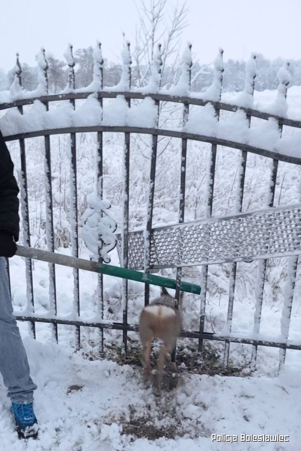 Dziś rano, policjanci z komisariatu w Kruszynie, którzy jak co dzień przyjechali na służbę, zauważyli nietypową sytuację za budynkiem jednostki. Szybkiej pomocy potrzebowała sarna, która utknęła w ogrodzeniu przy komisariacie. Nie była w stanie uwolnić się sama, a panujące zimowe warunki dodatkowo potęgowały zagrożenie dla jej zdrowia i życia.