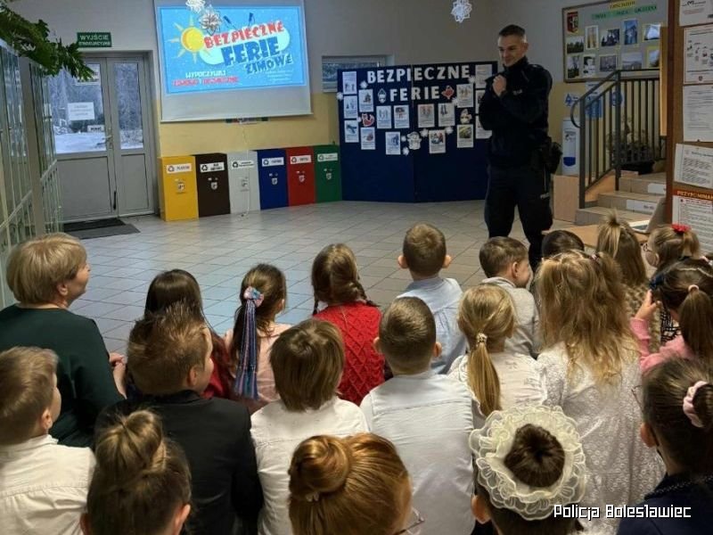 Tuż przed feriami dzielnicowi z Komendy Powiatowej Policji w Bolesławcu przeprowadzają spotkania uczniami. Celem spotkań jest przypomnienie zasad bezpieczeństwa podczas zimowego wypoczynku.