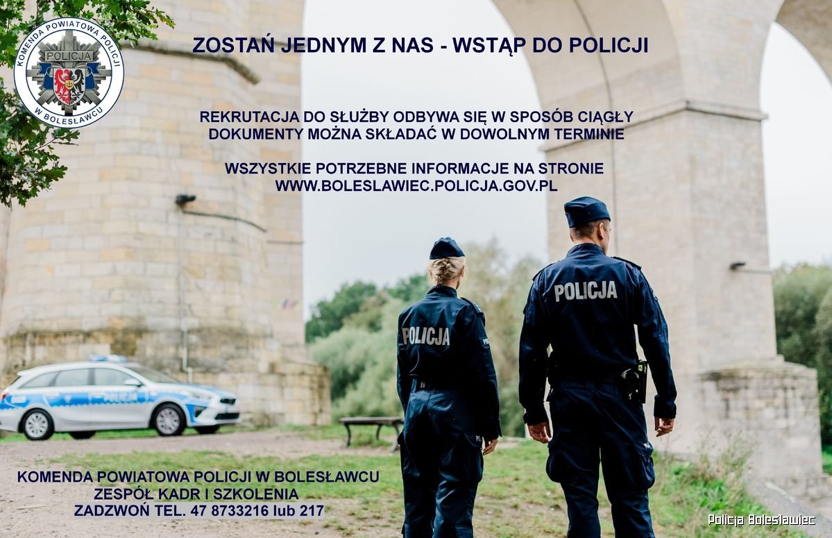 Komendant Powiatowy Policji w Bolesławcu zaprasza osoby zainteresowane służbą w Policji do wizyty w tutejszej jednostce oraz rozpoczęcia procedury rekrutacyjnej.
